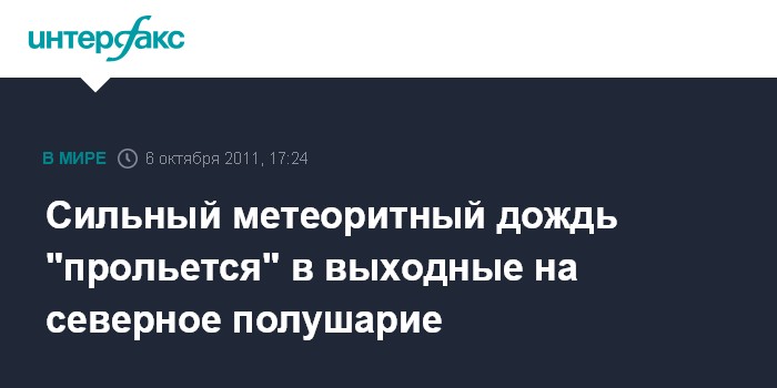 Томск/Кемерово. 6 октября. INTERFAX.RU - Всплеск активности метеоритного потока Дракондиов, порожденных кометой Джакобини-Циннера, предоставит жителям северного полушария возможность в ночь на воскресенье, 9 октября, наблюдать тысячи метеоритов, сгорающих в плотных слоях атмосферы.