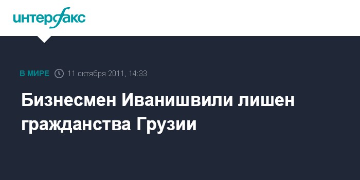 Тбилиси. 11 октября. INTERFAX.RU - Агентство гражданского реестра Минюста Грузии заявило, что бизнесмен Бидзина Иванишвили, намеревающийся создать оппозиционную партию, не является больше гражданином республики.