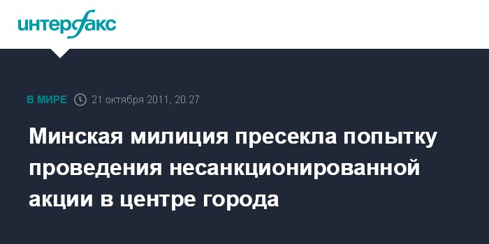 Минск. 21 октября. INTERFAX.RU - Правоохранительные органы воспрепятствовали проведению несанкционированной акции немногочисленных представителей белорусской оппозиции в центре Минска.