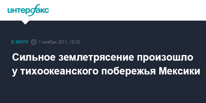 Вашингтон. 1 ноября. INTERFAX.RU - Сильное землетрясение магнитудой 6,5 произошло у тихоокеанского побережья Мексики, сообщила во вторник Геологическая служба США.