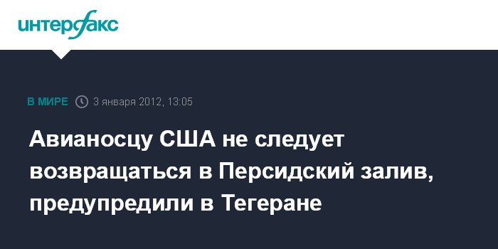 Авианосцу США не следует возвращаться в Персидский залив, предупредили в Тегеране