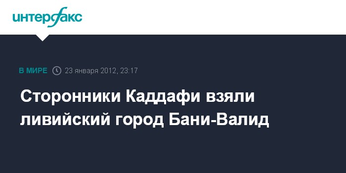 Ранее сообщалось, что вооруженные сторонники покойного полковника М.Каддафи захватили город Бани-Валид, находящийся на севере Ливии недалеко от столицы Триполи.