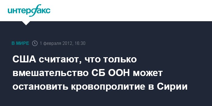 США считают, что только вмешательство СБ ООН может остановить кровопролитие в Сирии