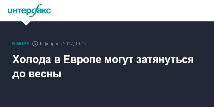 Париж. 9 февраля. INTERFAX.RU - Суровые морозы, охватившие Западную и Центральную Европу, могут продлиться до конца февраля, пишет в четверг французская газета Le Figaro.
