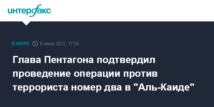 Дели. 6 июня. INTERFAX.RU - США провели операцию в Пакистане, целью которой была ликвидация номера два среди лидеров "Аль-Каиды" Абу Яхьи аль-Либи, заявил в среду министр обороны США Леон Панетта в ходе визита в Индию.