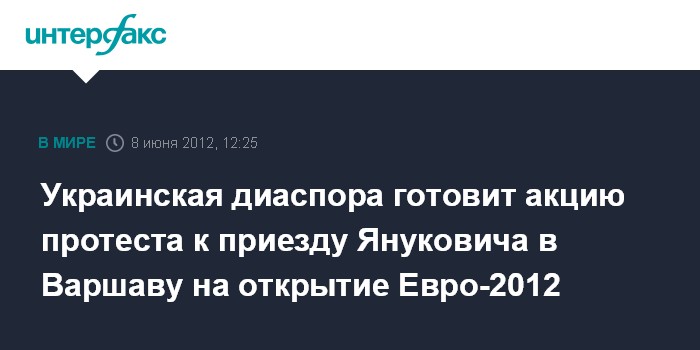 Между тем, активисты украинской диаспоры в Варшаве намерены выступить с "просветительской акцией" против Януковича. Они планируют раздавать в центре польской столицы болельщикам листовки на польском и английском языках, сообщает медиапортал украинской диаспоры. Европейцев будут призывать бойкотировать украинскую власть, которая "устанавливает в стране авторитаризм", и поддержать Украину и ее народ. В акции примут участие украинские писатели, ученые, бизнесмены, музыканты и студенты, которые живут и работают в Варшаве. Они соберутся возле Королевского замка в Варшаве, а затем отправятся по центру города к Национальному стадиону.