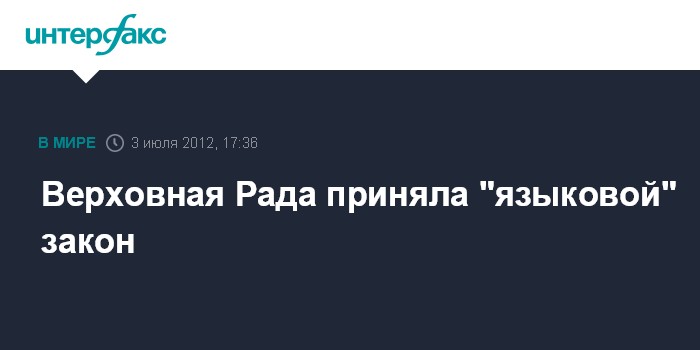 Киев. 3 июля. INTERFAX.RU - Верховная Рада Украины на заседании во вторник 248 голосами приняла в целом закон об основах государственной языковой политики, сообщил агентству "Интерфакс-Украина" автор закона, народный депутат (фракция Партии регионов - ИФ) Вадим Колесниченко.