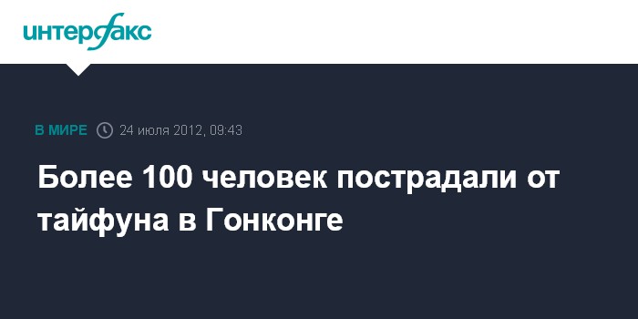 Гонконг. 24 июля. INTERFAX.RU - Более 100 человек получили ранения и травмы различной степени тяжести в Гонконге в результате мощного тайфуна, обрушившегося в понедельник вечером на этот специальный административный район Китая.