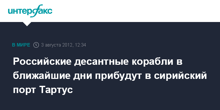Москва. 3 августа. INTERFAX.RU - Большие десантные корабли Северного флота из состава объединенной межфлотской группировки, выполняющие задачи в Средиземном море, в ближайшие дни зайдут в пункт материально-технического обеспечения ВМФ России в сирийском порту Тартус, сообщил журналистам в пятницу источник в российском Генеральном штабе.