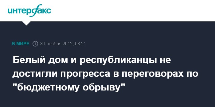 Вашингтон. 30 ноября. INTERFAX.RU - Белый дом и республиканцы не достигли в четверг прогресса на бюджетных переговорах, призванных предотвратить наступление с 1 января 2013 года "бюджетного обрыва".