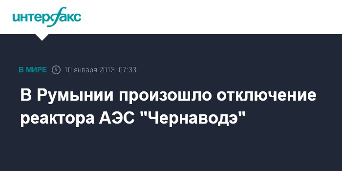 Лондон. 10 января. ИНТЕРФАКС - На атомной электростанции "Чернаводэ" в Румынии в среду вечером произошло экстренное отключение одного из двух реакторов, сообщила компания-оператор станции.