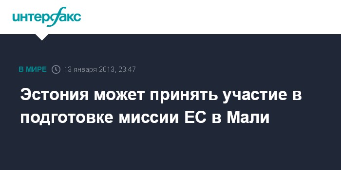 Таллин. 13 января. ИНТЕРФАКС - Эстония готова внести свой вклад в подготовку миссии зарубежного обучения ЕС в Мали, заявил министр в воскресенье иностранных дел Урмас Паэт (Urmas Paet).