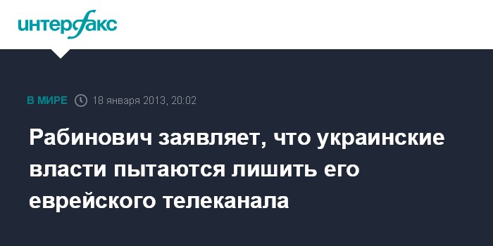 Как сообщается на сайте Объединенной еврейской общины Украины в пятницу, Рабинович уже обратился с соответствующим заявлением в Генеральную прокуратуру Украины. "17 января к Рабиновичу прибыл высокопоставленный чиновник нынешней власти и угрожая преследованиями - вплоть до физической расправы - потребовал передать в течении недели телевизионный канал JN1 в их распоряжение", - говорится в сообщении.