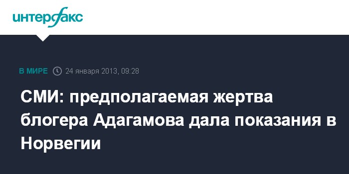 "По норвежским законам имя потерпевшей не будет разглашаться в прессе, в российских документах, по просьбе самой пострадавшей, оно будет засекречено. Это было главным условием, по которому жертва Адагамова согласилась общаться с сотрудниками правоохранительных органов", - отмечает газета.