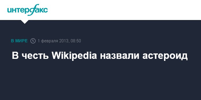 Киев. 31 января. INTERFAX.RU - 31 января, в день рождения украинского раздела интернет-энциклопедии Wikipedia, стало известно, что в честь этого ресурса был назван один из астероидов Солнечной системы.