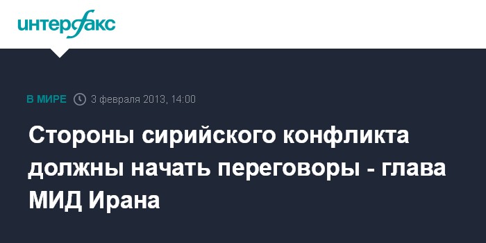 Стороны сирийского конфликта должны начать переговоры - глава МИД Ирана