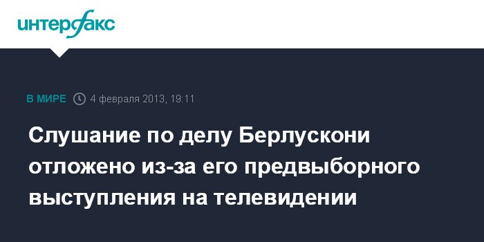 Слушание по делу Берлускони отложено из-за его предвыборного выступления на телевидении