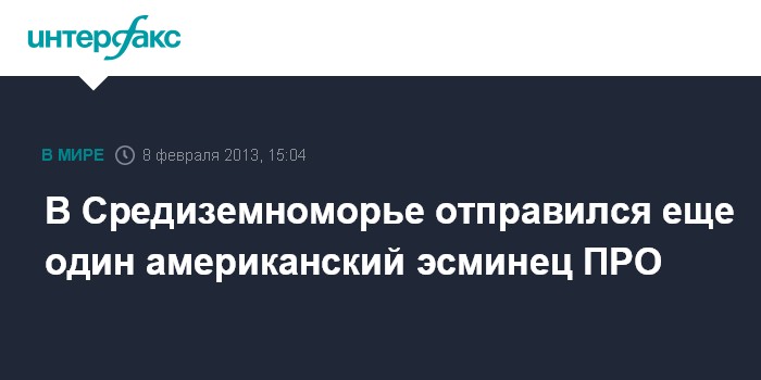Вашингтон. 8 февраля. INTERFAX.RU - Американский эскадренный миноносец "Барри" (Barry), оснащенный системой противоракетной обороны, отправился на боевое дежурство в Средиземное море в зону ответственности Шестого оперативного флота, сообщила информационная служба ВМС США.