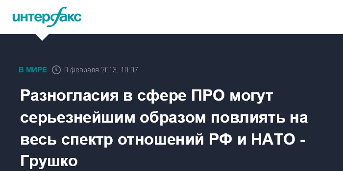 Разногласия в сфере ПРО могут серьезнейшим образом повлиять на весь спектр отношений РФ и НАТО - Грушко