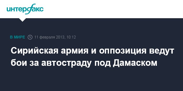 Бейрут. 11 февраля. INTERFAX.RU - Правительственные войска Сирии и силы оппозиции ведут бои в районе основной автомагистрали страны близ Дамаска, сообщает в воскресенье агентство The Associated Press.