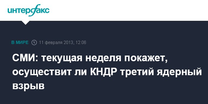 Сеул. 11 февраля. INTERFAX.RU - Текущая неделя покажет, возможно ли осуществление Северной Кореей третьего ядерного взрыва, заявил в понедельник официальный южнокорейский представитель.