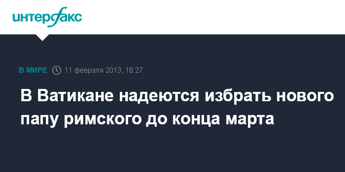 Рим. 11 февраля. INTERFAX.RU - Преемник Бенедикта XVI, вероятно, станет известен уже к концу марта, заявил в понедельник представитель Ватикана Федерико Ломбарди.