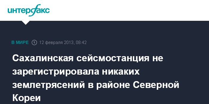 Южно-Сахалинск. 12 февраля. INTERFAX.RU - Сахалинские сейсмологи не зарегистрировали во вторник никаких землетрясений в районе Северной Кореи и на ближайшей к ней территории российского Дальнего Востока.