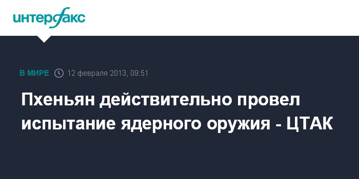 Сеул. 12 февраля. INTERFAX.RU - КНДР успешно провела подземное испытание ядерного оружия, сообщает во вторник северокорейское агентство ЦТАК.