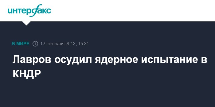 Претория. 12 февраля. INTERFAX.RU - Глава МИД РФ Сергей Лавров заявил, что ядерное испытание в Северной Корее заслуживает осуждения и соответствующей реакции СБ ООН, и необходимо возобновить в ближайшем будущем шестисторонние переговоры по ядерной проблеме Корейского полуострова.