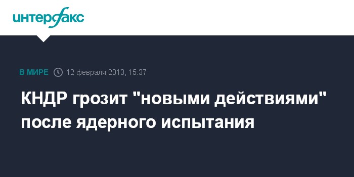 Сеул. 12 февраля. INTERFAX.RU - Министерство иностранных дел КНДР объявило о планах Пхеньяна предпринять "новые действия еще большего масштаба" после проведенного во вторник ядерного испытания.
