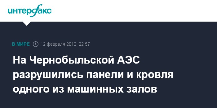 Ранее первый заместитель Государственного агентства по управлению зоной отчуждения Дмитрий Бобро сообщил изданию "Комсомольская правда в Украине", что на ЧАЭС в неработающем машинном зале обрушилось несколько подвесных бетонный панелей. Опасности для людей это происшествие не представляет.
