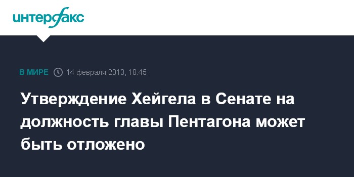 Вашингтон. 14 февраля. INTERFAX.RU - Несколько сенаторов от Республиканской партии США могут задержать проведение общесенатского утверждения кандидатуры Чака Хейгела на должность главы Пентагона, сообщает в четверг AP.