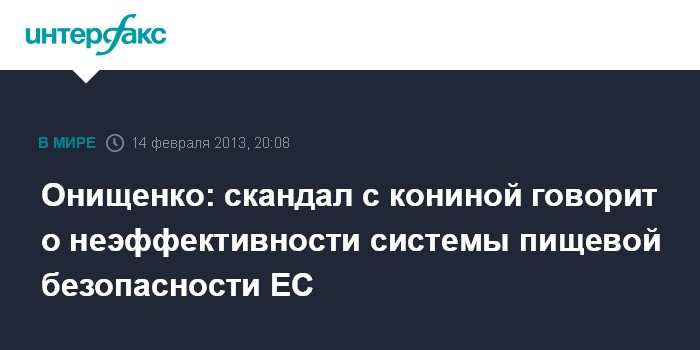 Онищенко: скандал с кониной говорит о неэффективности системы пищевой безопасности ЕС