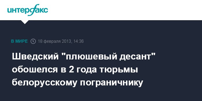 Минск. 18 февраля. INTERFAX.RU - Белорусский пограничник получил 2 года лишения свободы за то, что не сообщил по инстанциям о шведском самолете-нарушителе с плюшевыми медведями в защиту свободы слова.