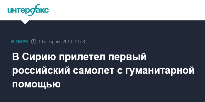В Сирию прилетел первый российский самолет с гуманитарной помощью