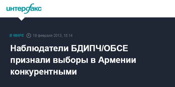 Ереван. 19 февраля. INTERFAX.RU - Прошедшие в Армении 18 февраля президентские выборы зафиксировали прогресс по сравнению с предыдущими выборами главы республики, говорится в заявлении миссии БДИПЧ/ОБСЕ, распространенном во вторник в Ереване.