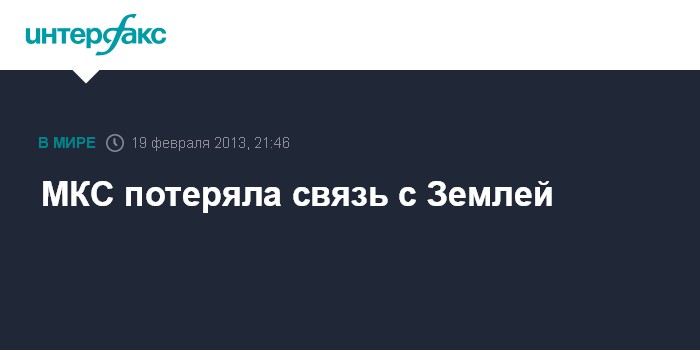 Москва. 19 февраля. INTERFAX.RU - Международная космическая станция (МКС) вечером во вторник потеряла связь с Землей, до сих пор она не восстановлена.