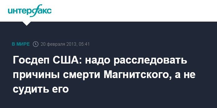 Госдеп США: надо расследовать причины смерти Магнитского, а не судить его
