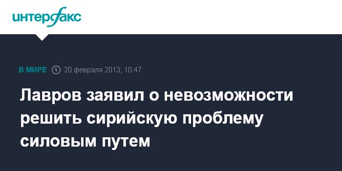 Москва. 20 февраля. INTERFAX.RU - Силовые методы не ведут к решению сирийского конфликта, все больше приходит понимание необходимости решить этот кризис путем диалога, заявил глава МИД РФ Сергей Лавров.