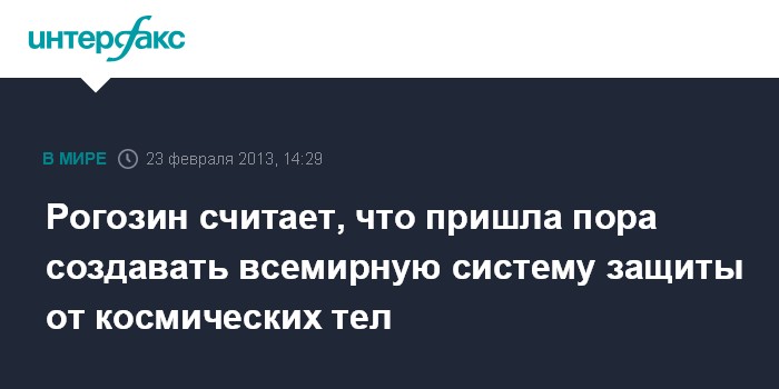 Рогозин считает, что пришла пора создавать всемирную систему защиты от космических тел
