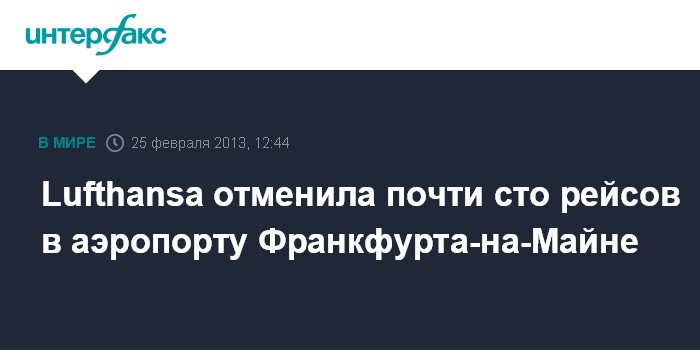 Берлин. 25 февраля. INTERFAX.RU- Руководство авиакомпании Lufthansa объявило об отмене 98 запланированных на понедельник авиарейсов в международном аэропорту Франкфурта-на-Майне из-за сильного снегопада.