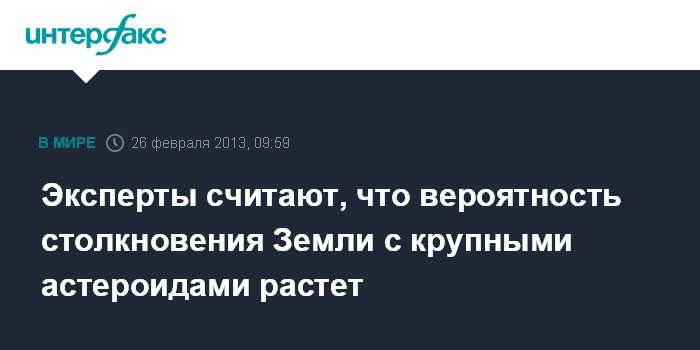 Эксперты считают, что вероятность столкновения Земли с крупными астероидами растет