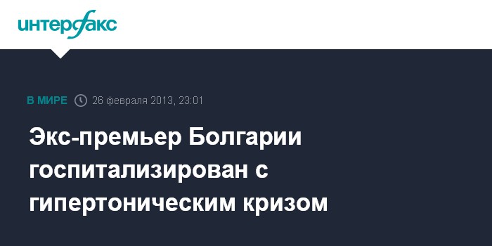 Экс-премьер Болгарии госпитализирован с гипертоническим кризом