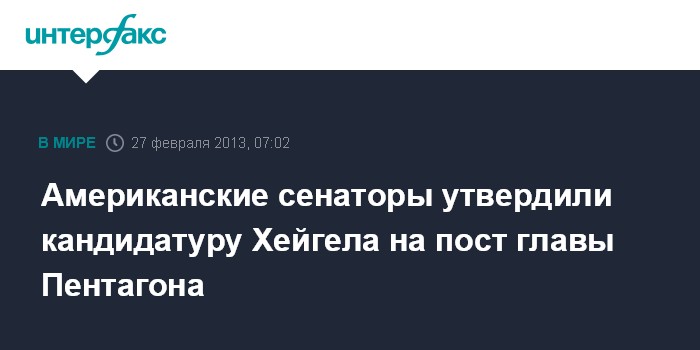 Американский сенат 15 февраля заблокировал его утверждение. Тогда "за" него проголосовали 40 сенаторов, в то время как "против" - 58, при этом, "практически все республиканцы проголосовали против" Ч.Хейгела, который ранее сам являлся сенатором от Республиканской партии.