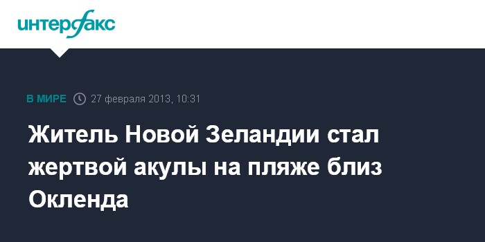 Сидней. 27 февраля. INTERFAX.RU - Акула напала на человека на одном из пляжей Новой Зеландии, спасти мужчину не удалось, сообщают в среду местные СМИ.