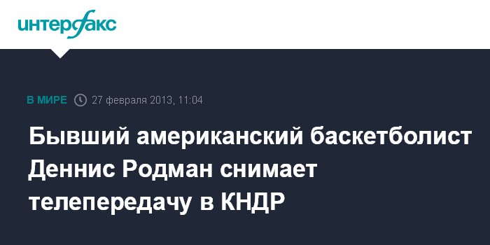 Вашингтон. 27 февраля. INTERFAX.RU - Завершивший профессиональную карьеру в Национальной баскетбольной ассоциации (НБА) Деннис Родман прибыл в Северную Корею, сообщает в среду американская газета The Washington Post.