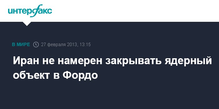 Алматы. 27 февраля. INTERFAX.RU - Тегеран не намерен прекращать деятельность на ядерном объекте в Фордо.