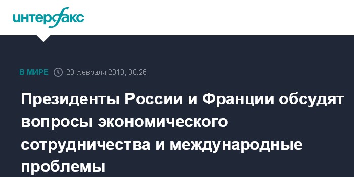 Президенты России и Франции обсудят вопросы экономического сотрудничества и международные проблемы
