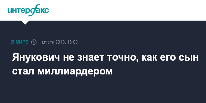 Киев. 1 марта. INTERFAX.RU - Президент Украины Виктор Янукович заявляет, что не знает подробностей роста доходов его сына Александра.