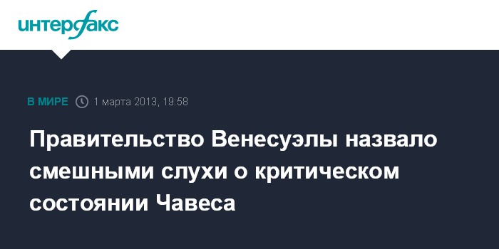 Правительство Венесуэлы назвало смешными слухи о критическом состоянии Чавеса